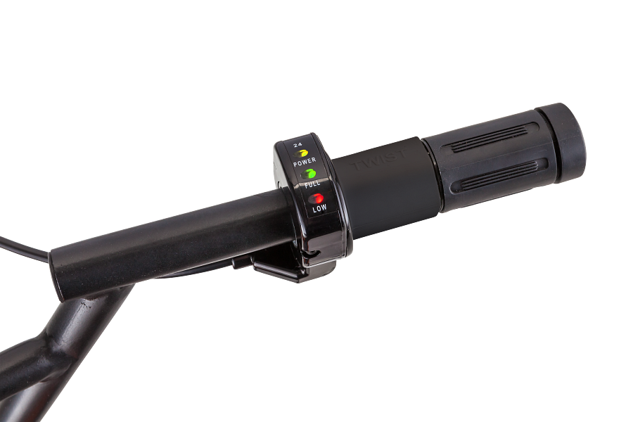 Aluminum mag wheels, tough built powder coated steel frame, and vinyl padded seat add to the grown-up look.