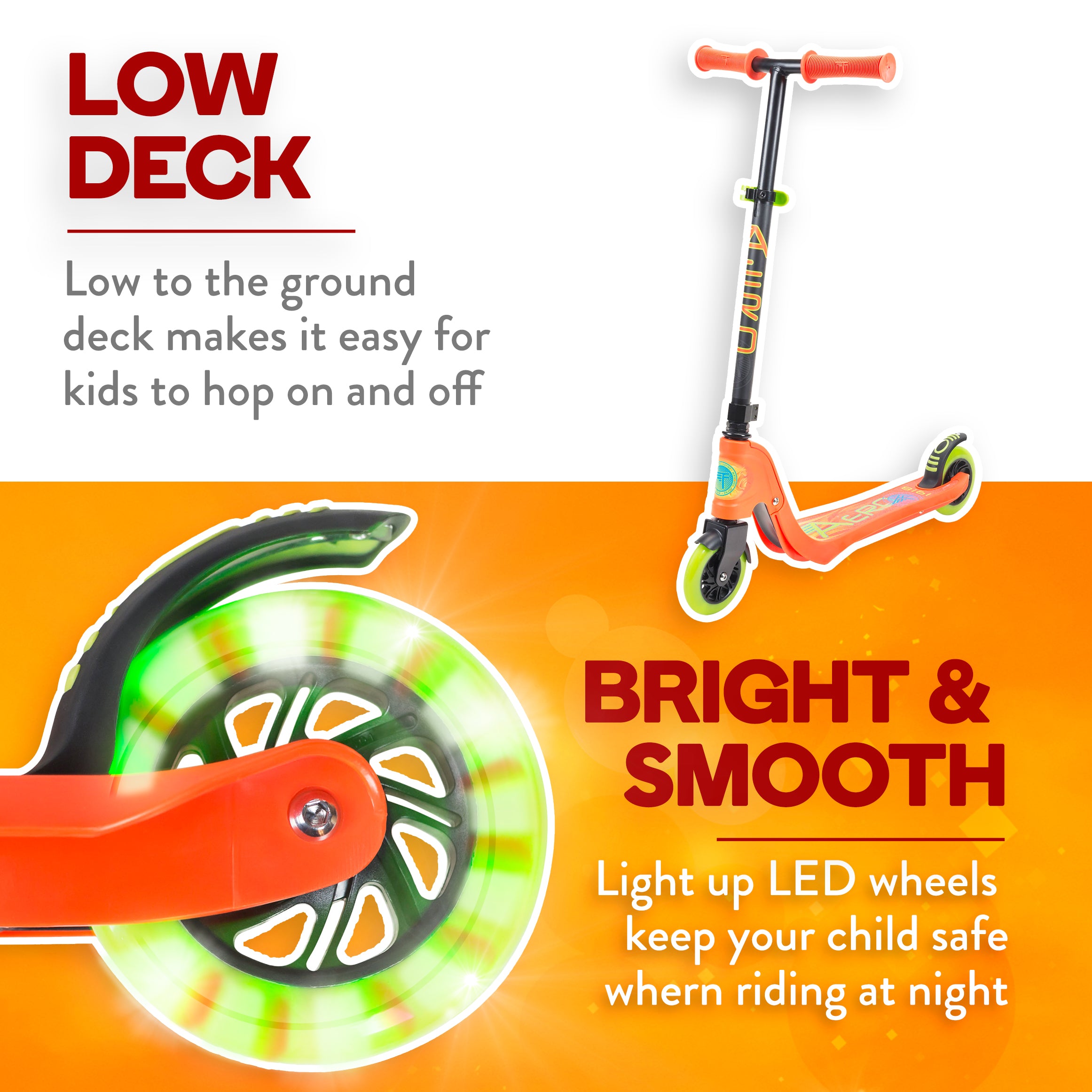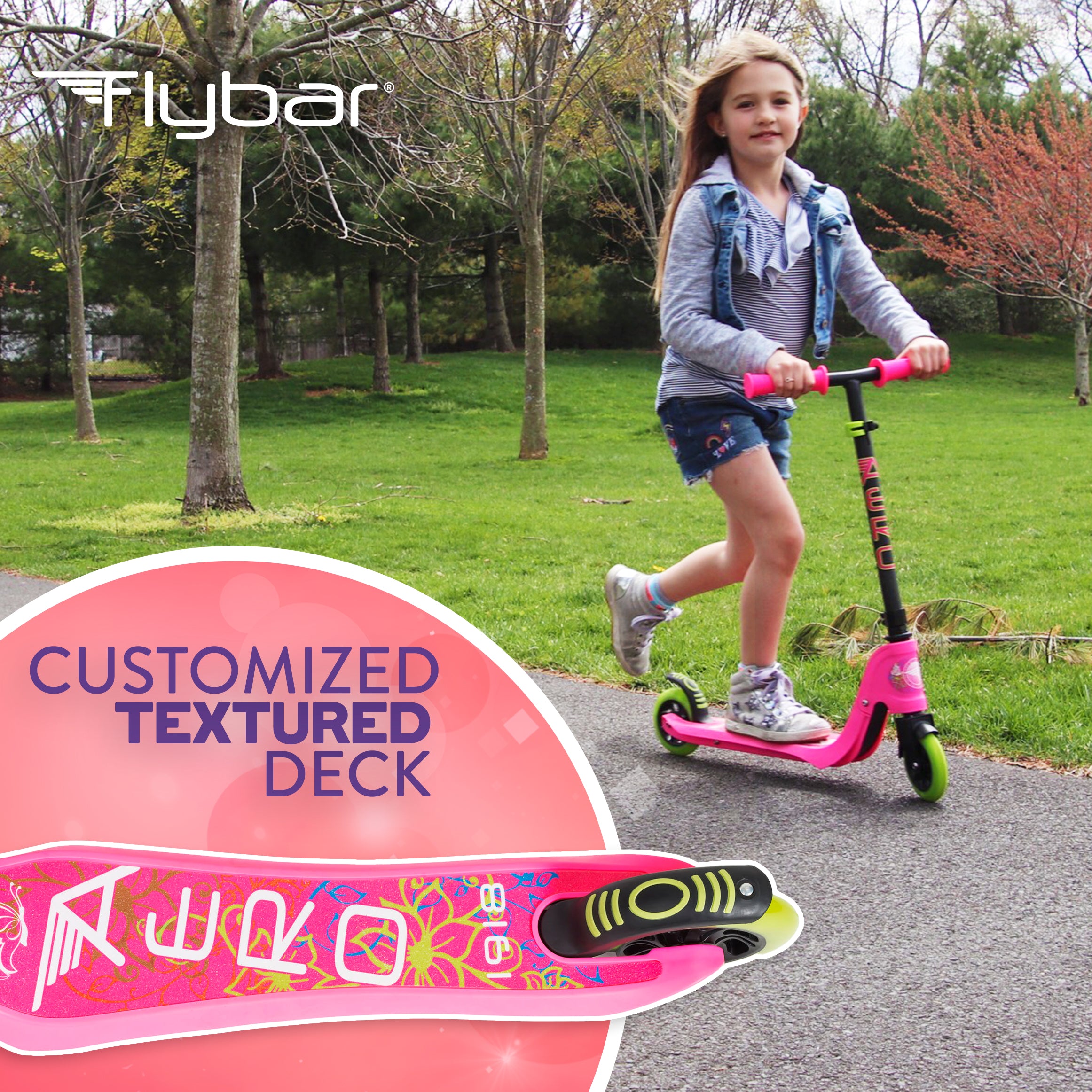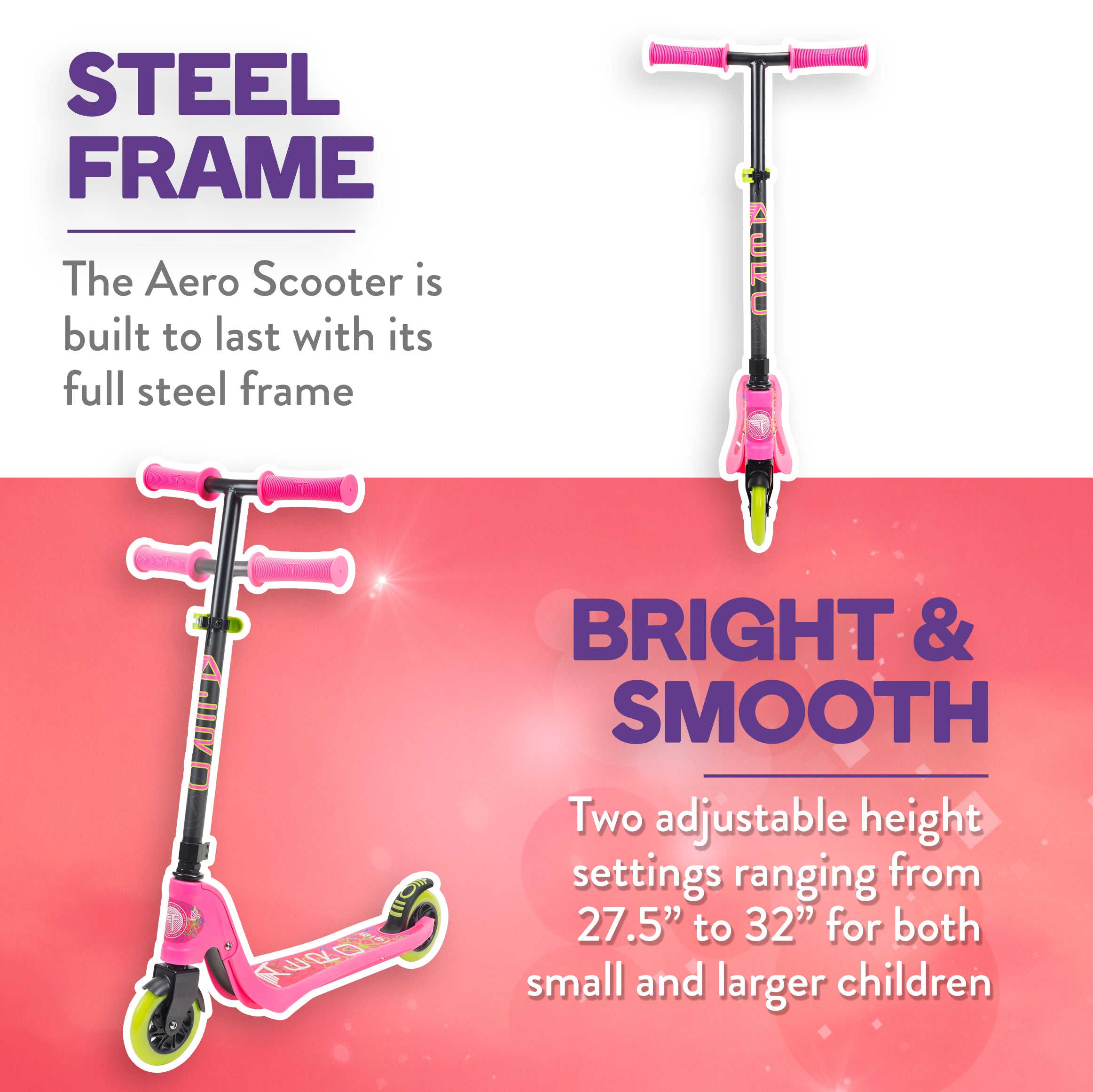 The Aero Scooter is the new smooth riding, thrill seeking 2 wheel scooter from Flybar. Ride in style with light up wheels and colorful designs. Made with a durable steel frame and steel supported composite deck built to make the fun last.