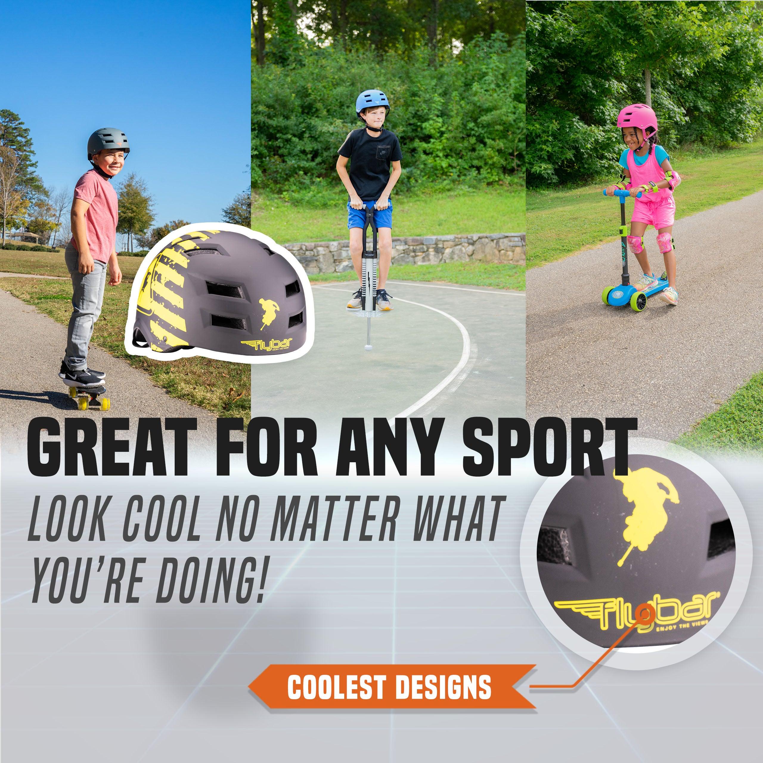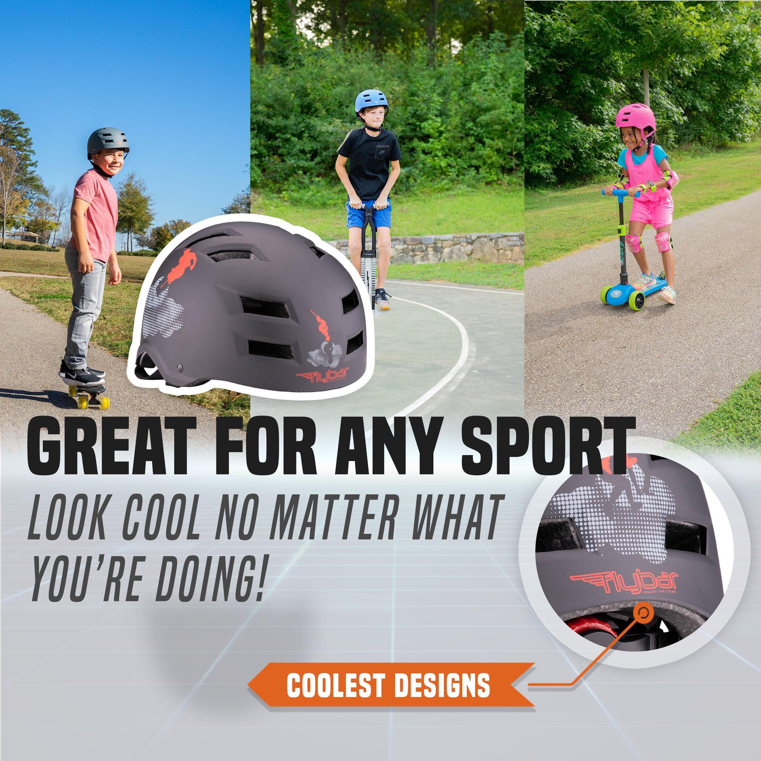 The Flybar Multi-Sport Helmet! Comfortable, stylish, and available in many options. Adjustable dial ensures a perfect fit