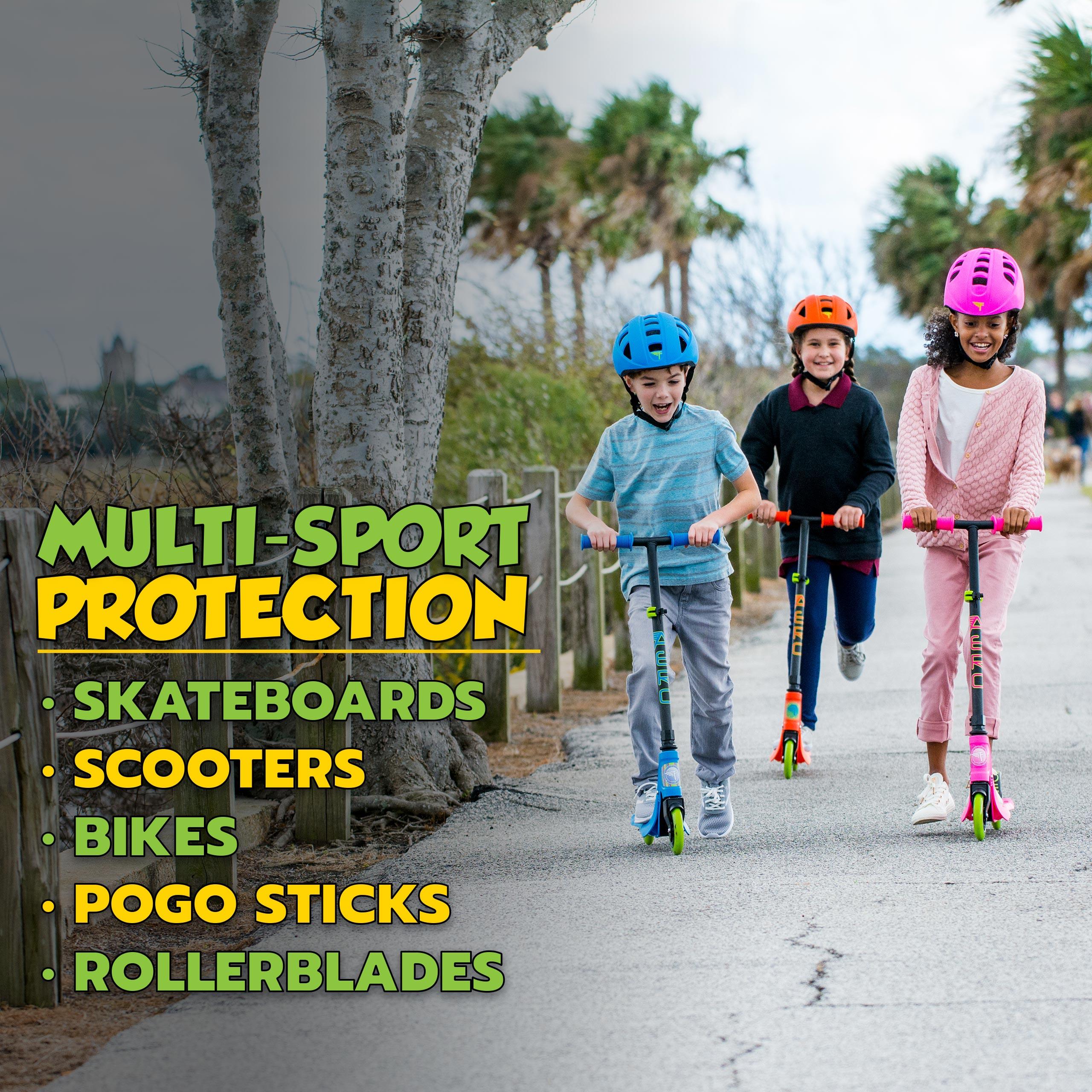 The Flybar Multi Sport Kids Helmet brings together fashion, style, comfort and safety! Great for use while kids are on their Pogo, Scooter, Skates and Bicycles. Whether you are looking for a bicycle helmet or a skateboard helmet, this is the choice for you! A strong ABS outer shell and EPS foam insert will safely protect your head. It features an adjustable head-lock dial to ensure a snug and safe fit. The Flybar Multi Sport Helmet for Kids is the perfect choice for you!
