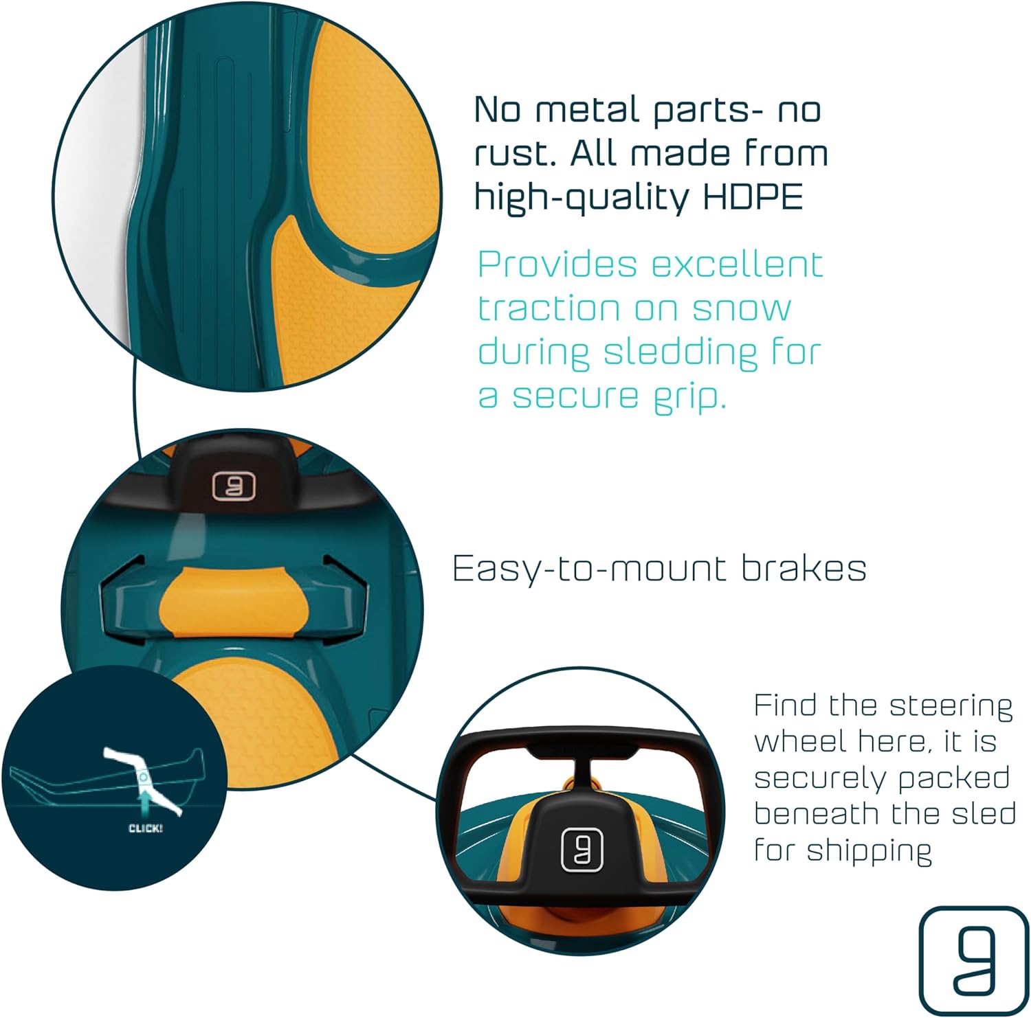 PLASTIC SLED: Made with heavy-duty plastic, ensuring exceptional durability for long-lasting use. Assuring its ability to withstand challenging conditions without compromising its performance.