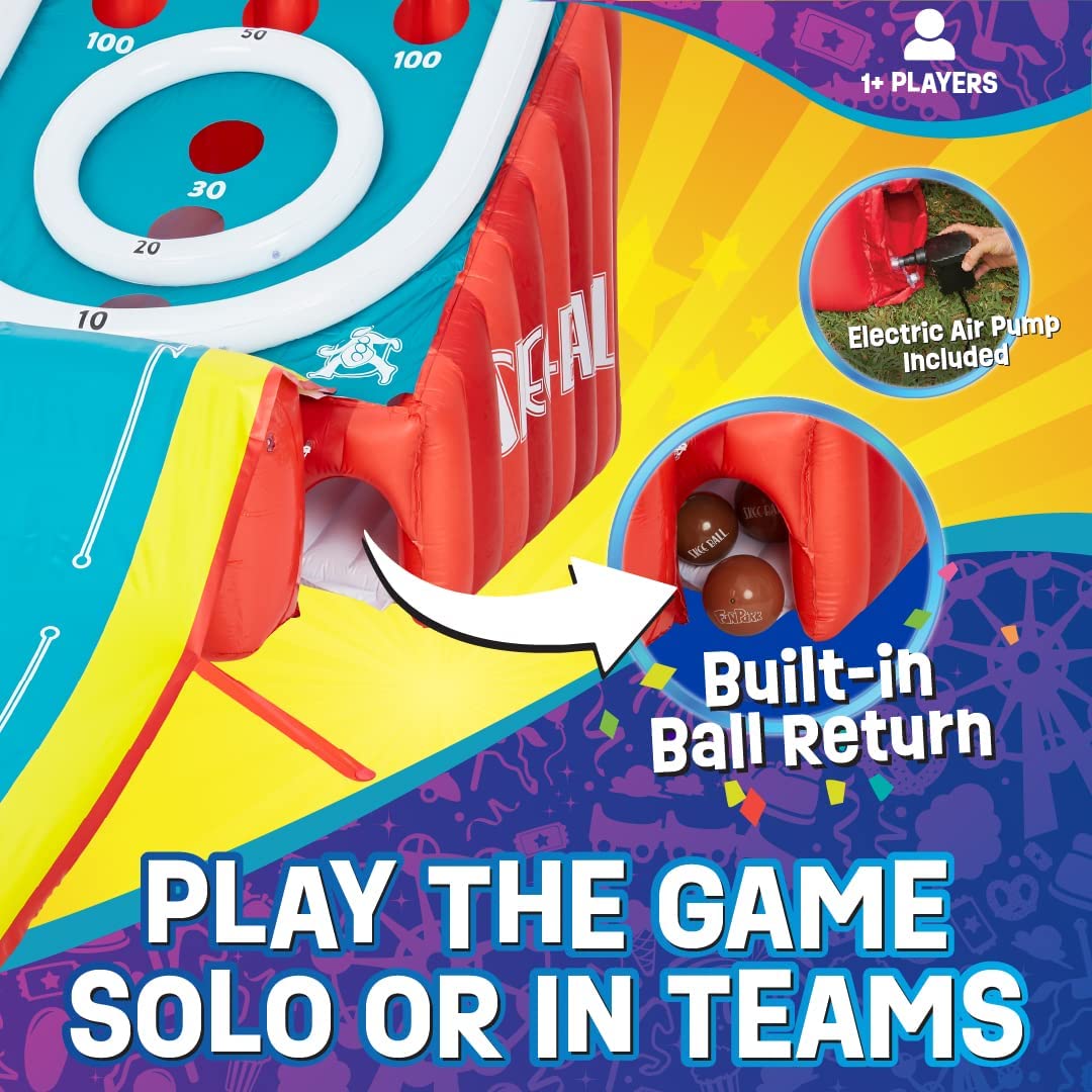 Enjoy endless hours of fun with this Skee-Ball game for kids and adults. Built with a durable inflatable design, this game includes an electric air pump for quick and convenient setup. Perfect for game nights, birthdays and other celebrations.