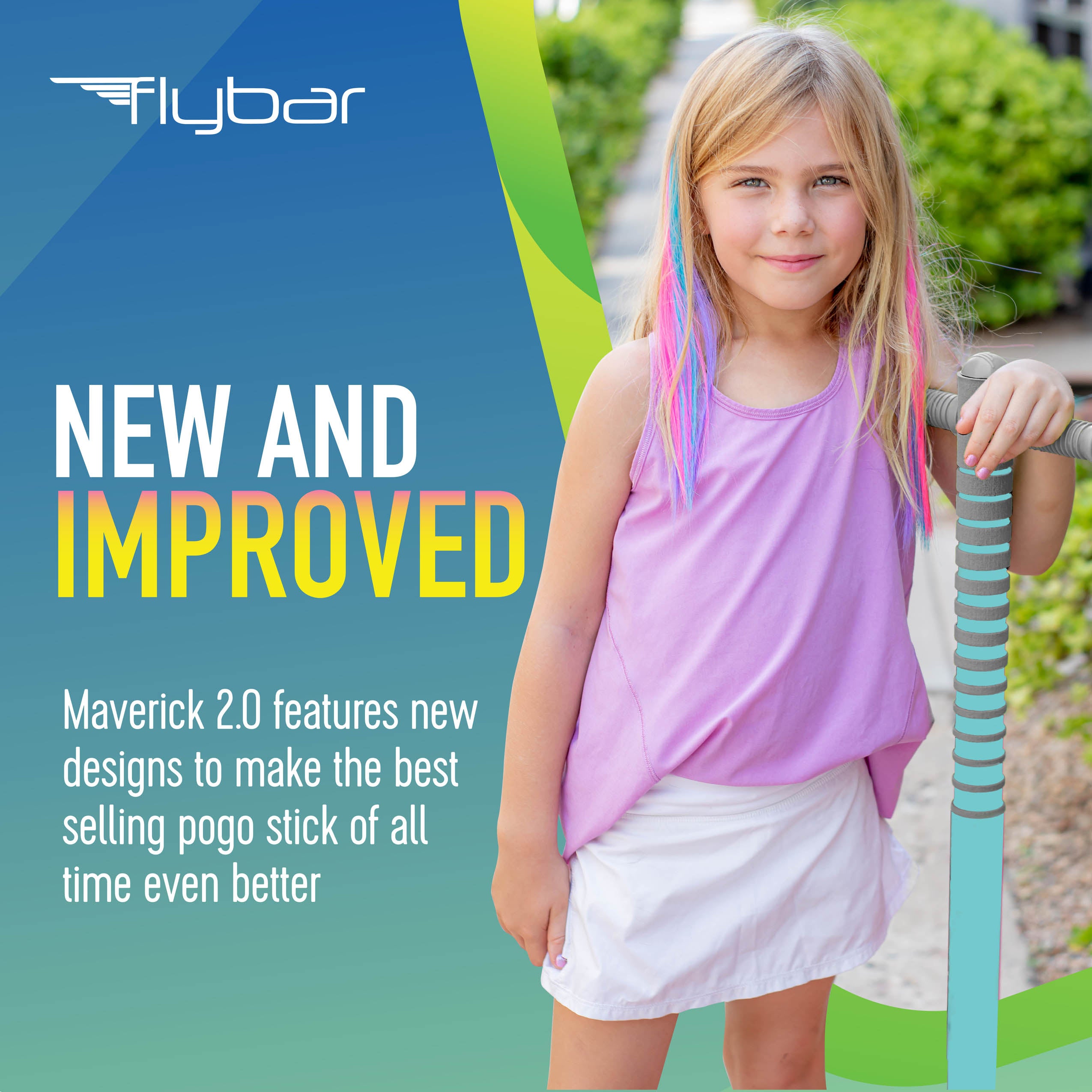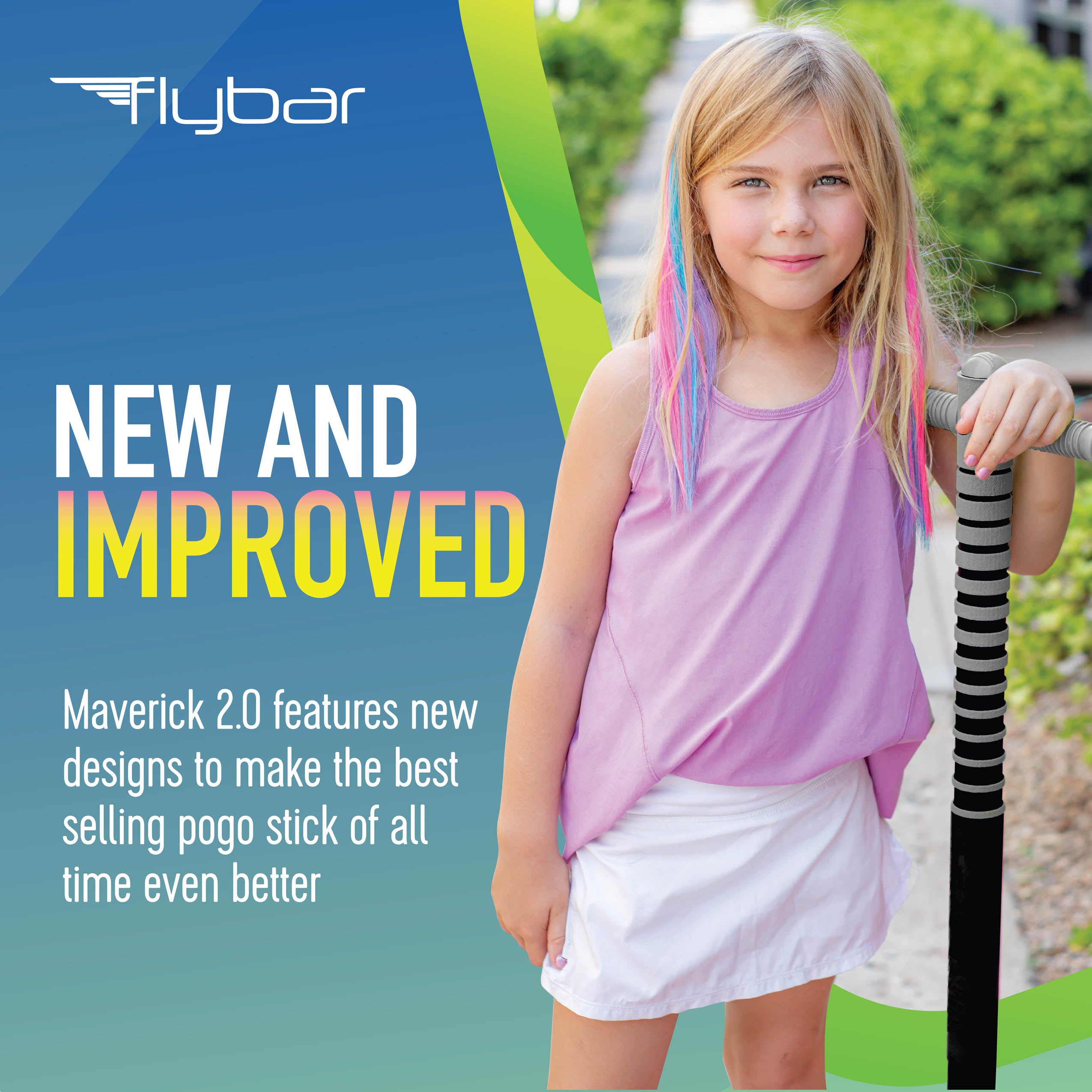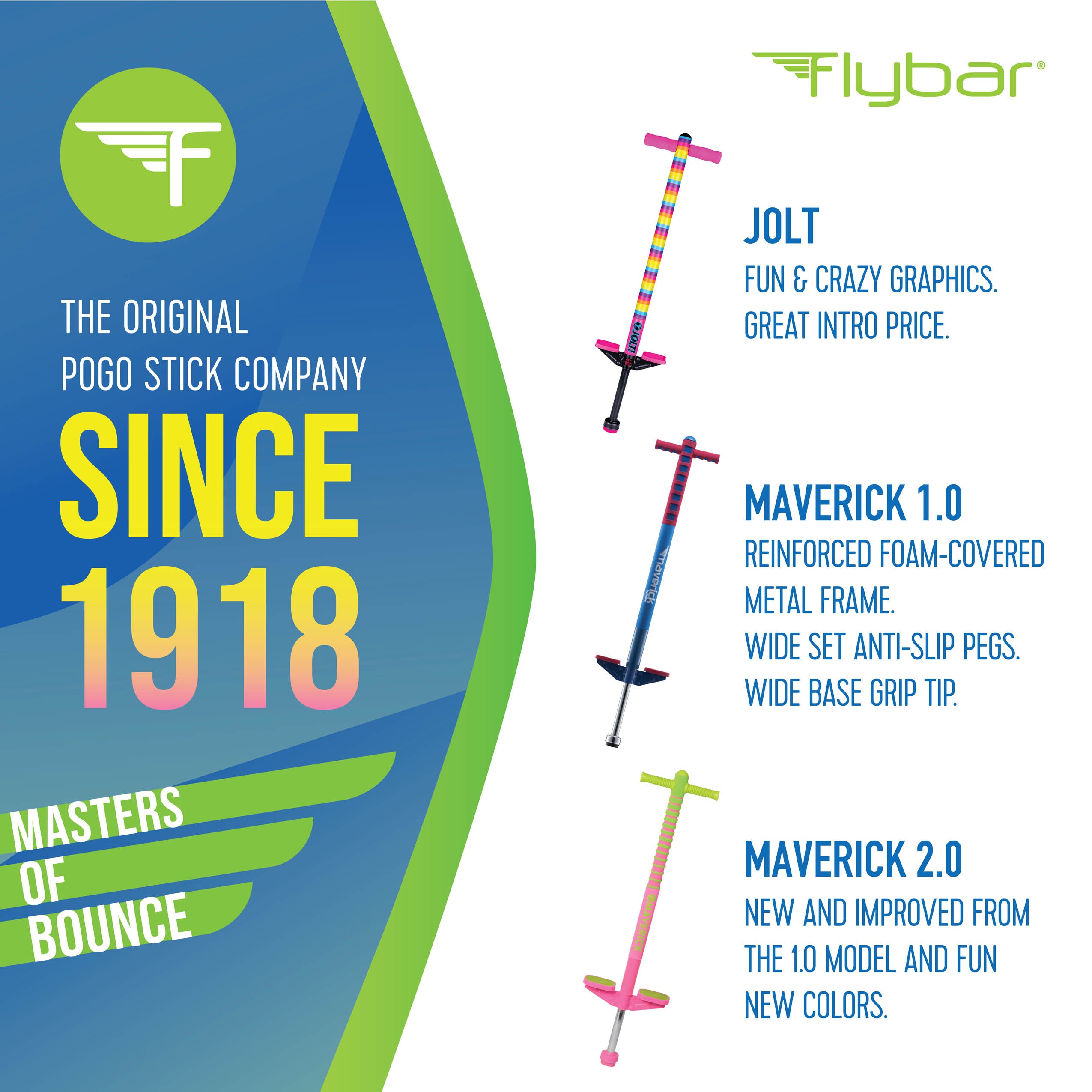 The upgraded Flybar Foam Maverick Pogo Stick 2.0 is the perfect stick for a first-time jumper! Covered in foam, it allows beginners a safe and fun way to learn how to pogo!