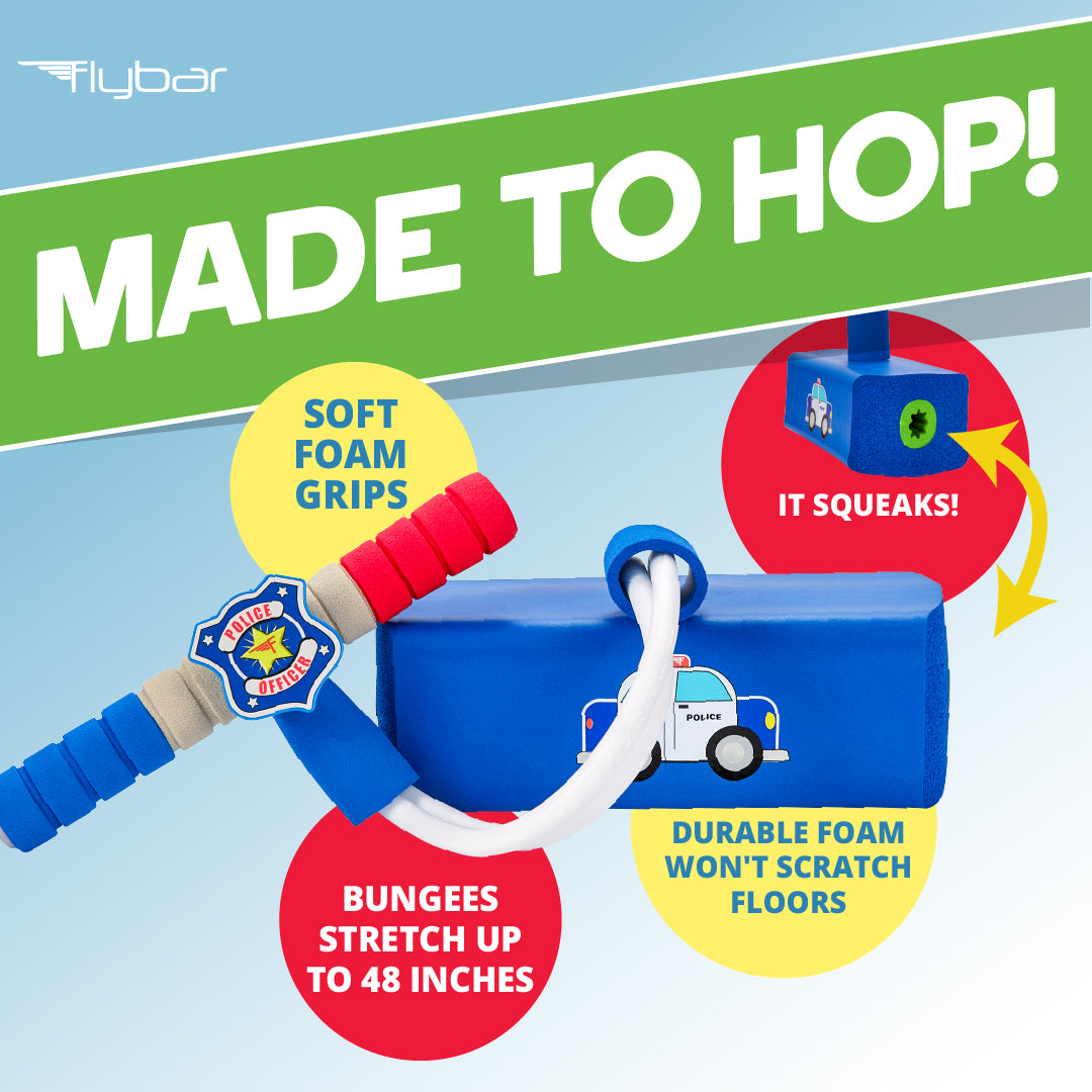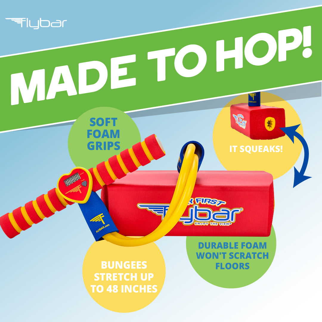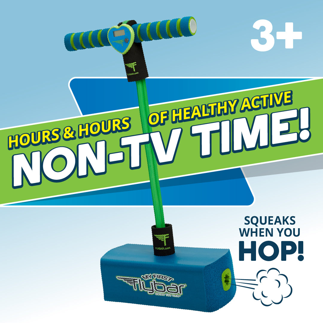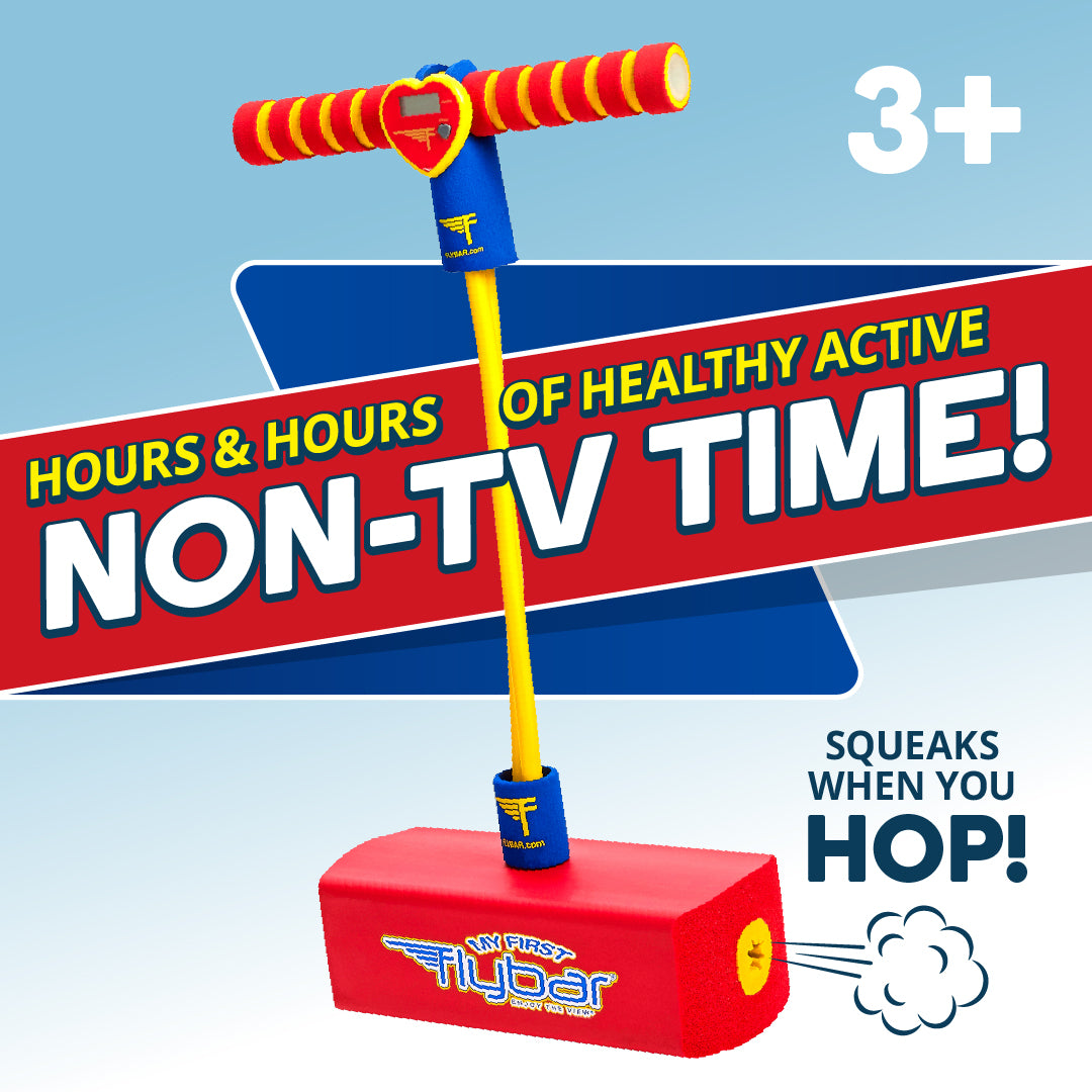 Boing, boing, squeak! The My First Flybar foam pogo stick is hours of healthy, bouncy fun. Crafted from durable foam, this is an ideal first pogo stick for kids; each jump makes a fun squeaky sound