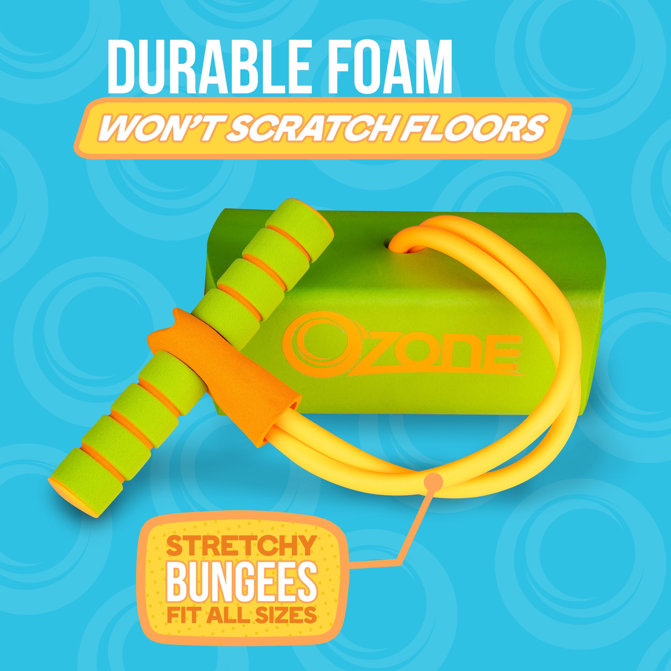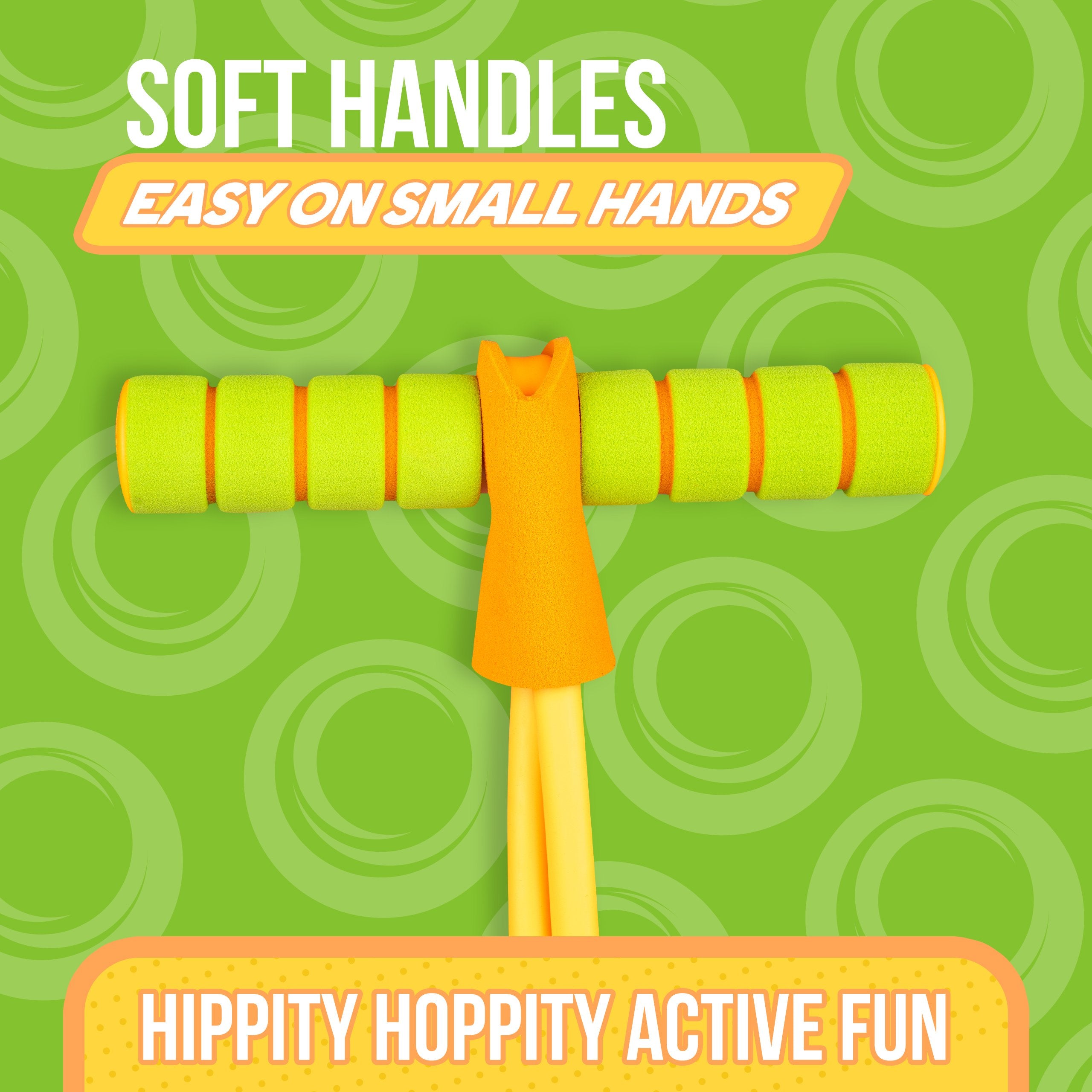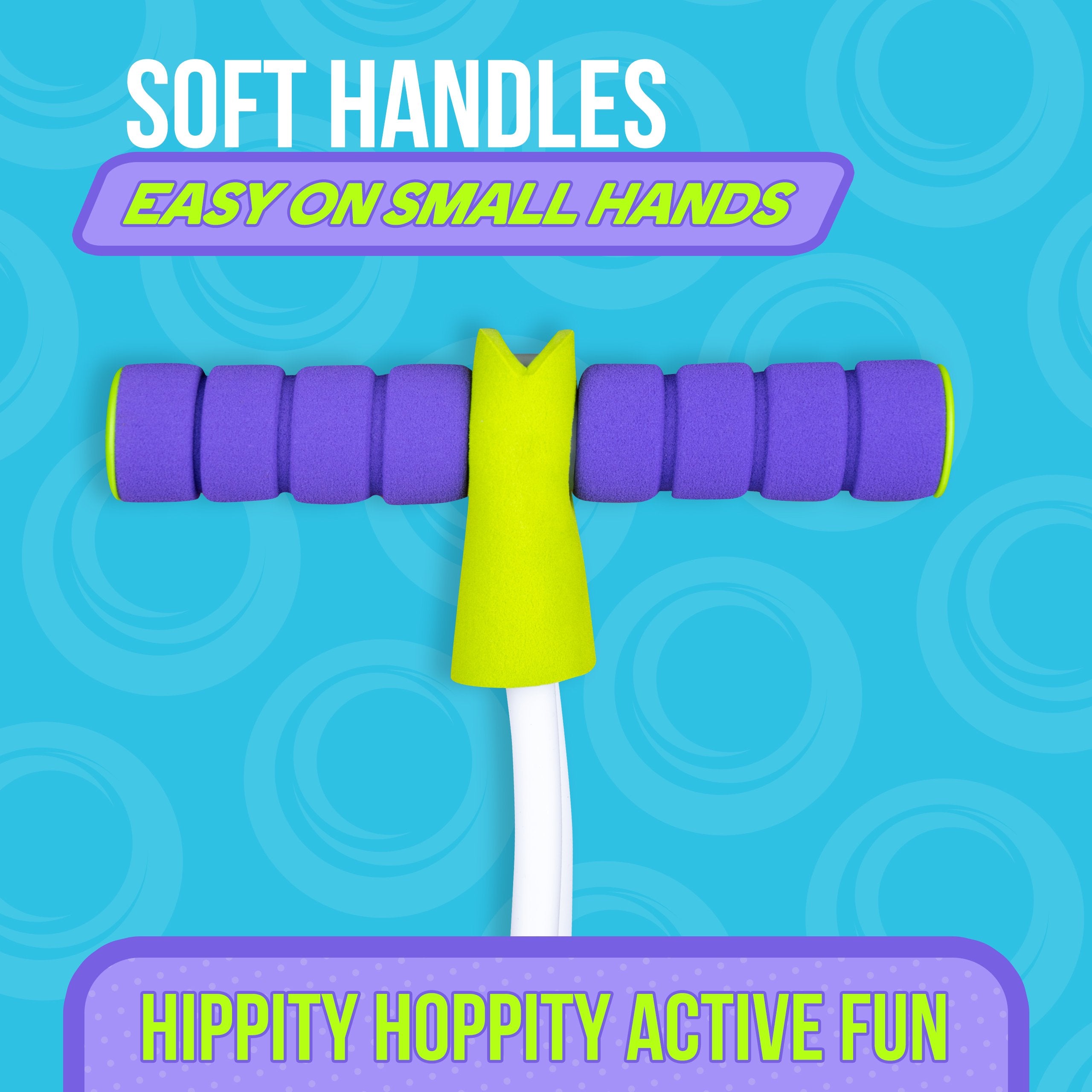 The pogo hopper supports weight up to 250 pounds (grown-up friendly!) and a soft, stretchy bungee connects the base to the easy-grip foam handles, giving your child a comfortable and safe pogo experience.