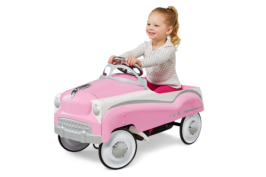 Classic pedal car for sidewalk and driveway fun. Seats one rider, ages 3 and up, with a maximum weight limit of 59 lb.