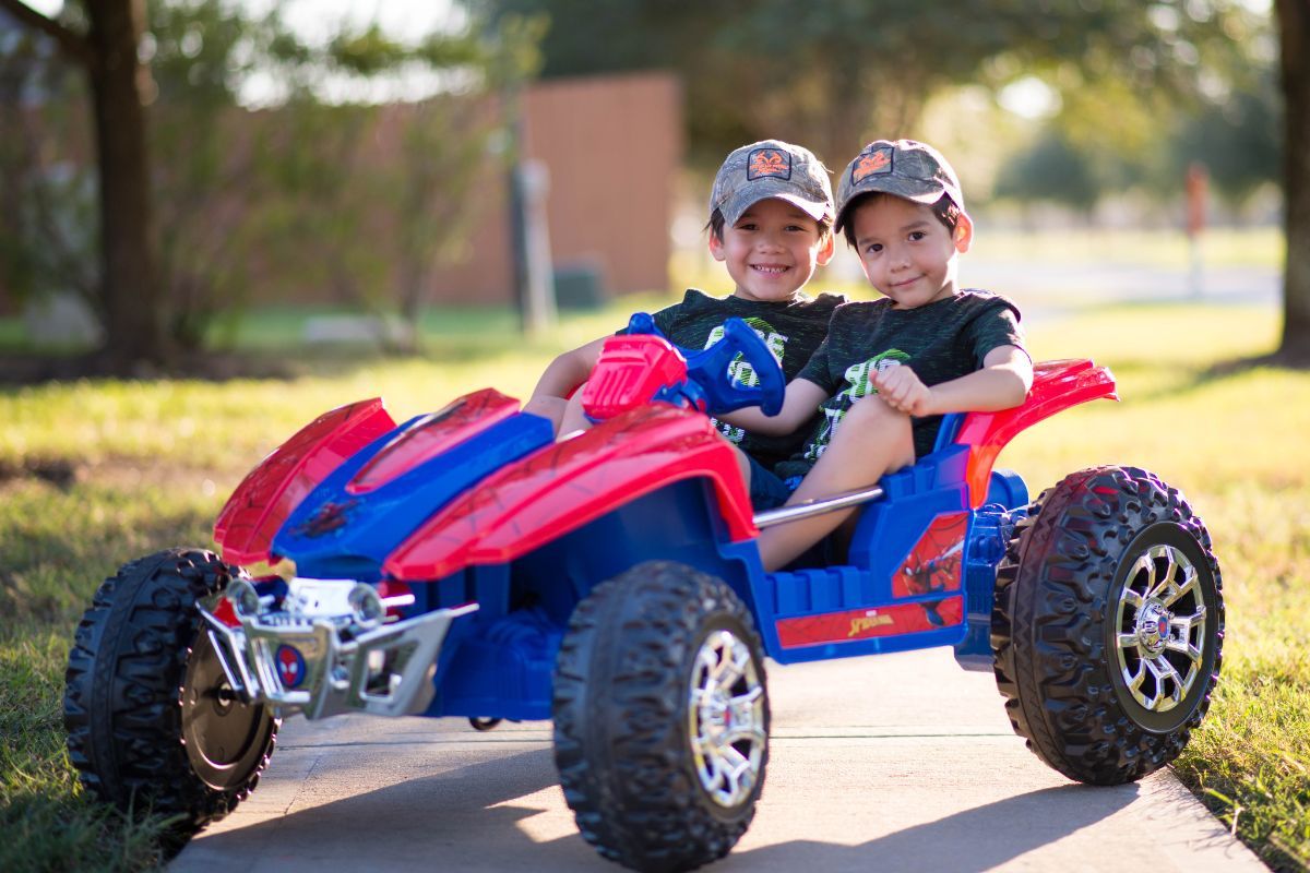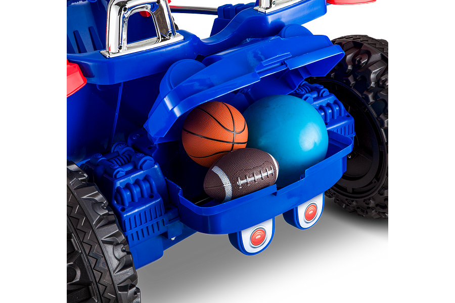 Don't let them get away! The Spider-Man Dune Buggy Ride-on Toy from Kid Trax is decked out with features that are sure to put a smile on your little superhero's face. Two forward speeds and one reverse speed mean your little web-slinger and a sidekick can choose how best to sneak up on villains. Spidey can put it in gear and barrel after the bad guys on Power Trax™ rubber traction strip tires for improved traction and pack loads of crime-fighting gear in the convenient rear storage space. Watch out! Your friendly neighborhood Spider-Man is in hot pursuit!