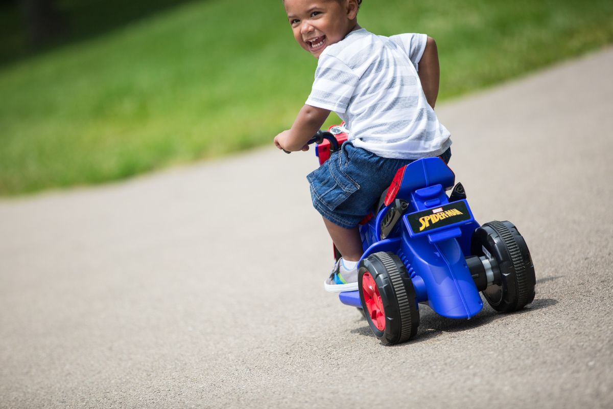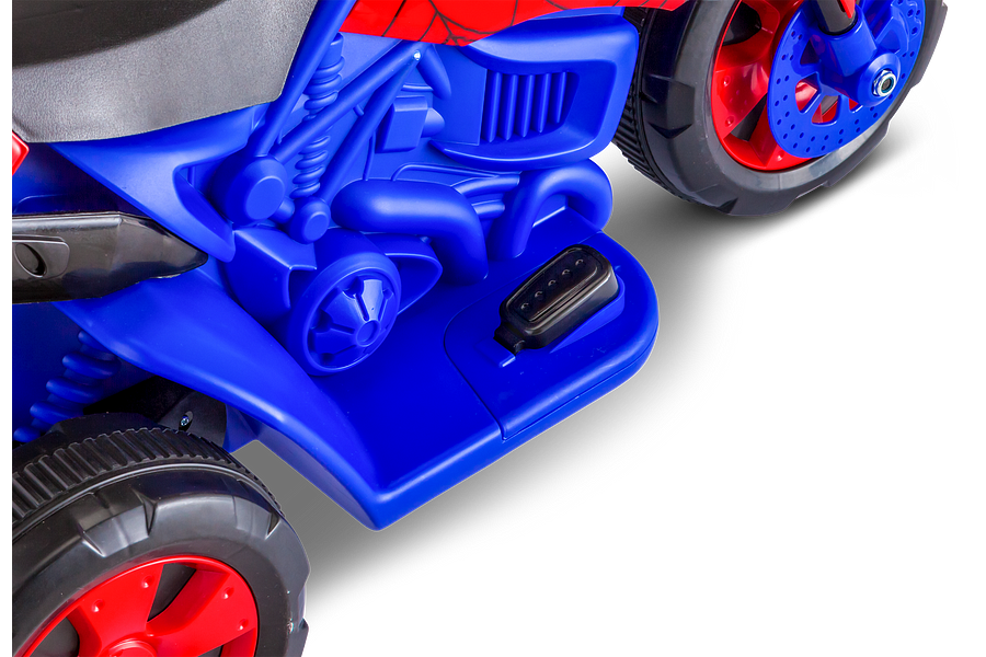 Bad guys don't stand a chance! Get your little one into the action with the Spider-Man Motorcycle Ride-on Toy from Kid Trax. Your superhero's Spidey senses will be tingling thanks to all the fantastic features that complement this crime-fighting ride-on. The working LED headlight and foot pedal acceleration create a lifelike driving experience, while the rubberized hand grips and Power Trax™ rubber traction strip tires help create a comfortable and safe way to chase down villains.