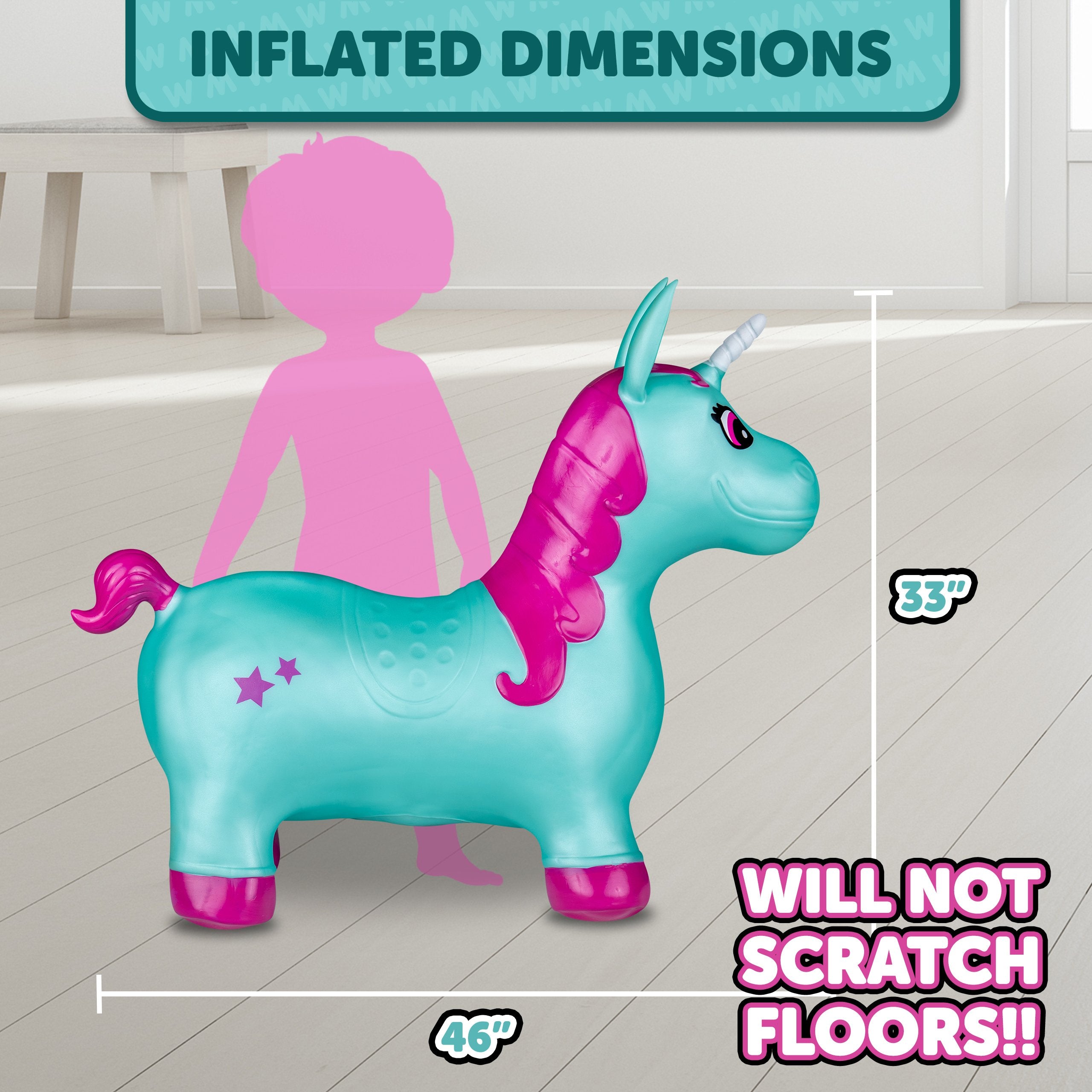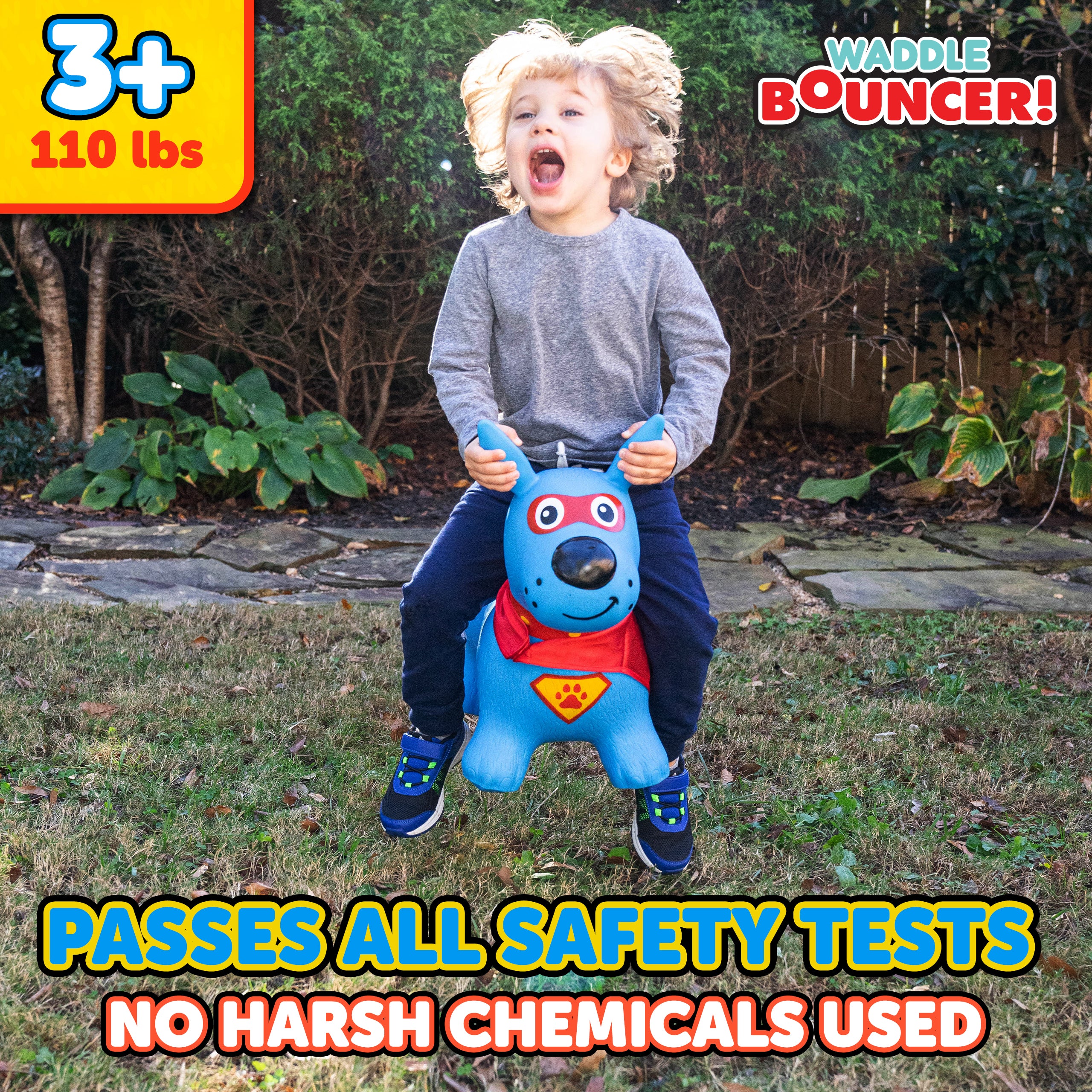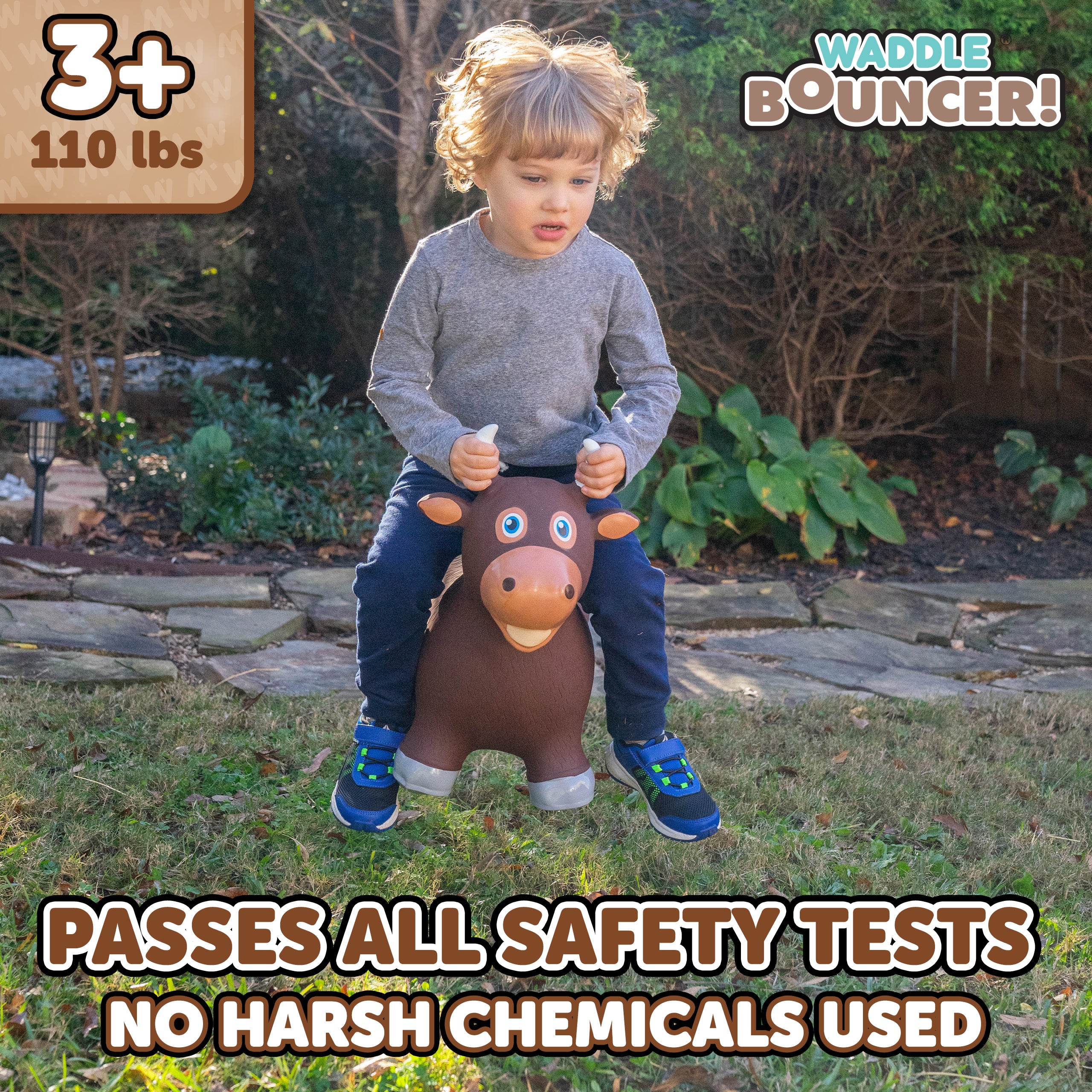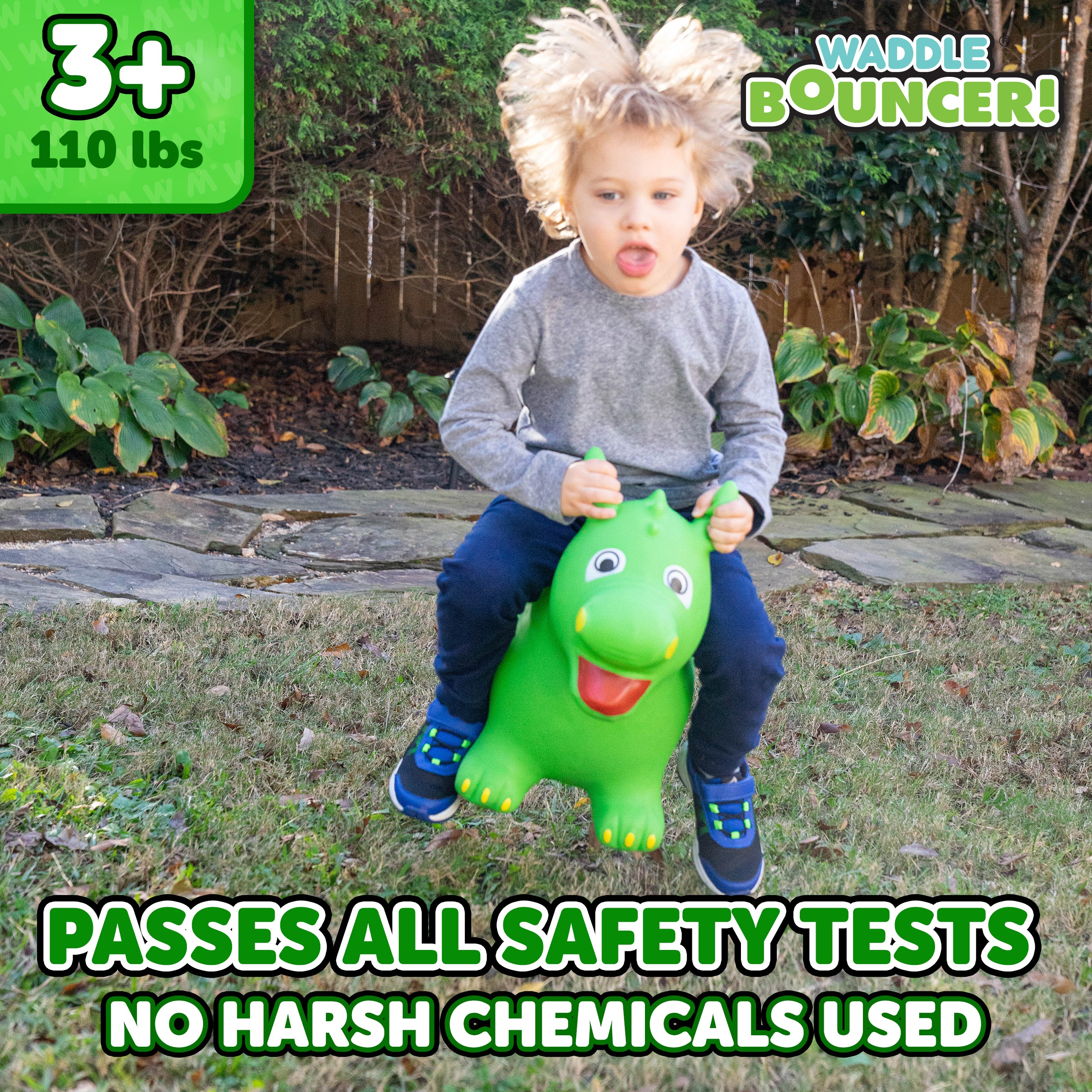 The Waddle Bouncy Hoppers are whimsical fun and perfect for little one’s development! Babies, toddlers, and older children can enjoy improving their skills, muscles, and balance. Durable, kid-safe material makes it safe for active children to enjoy. Features a stable design and easy grips. Pump included. For up to 110lbs.